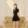 Đầm cổ đức xếp ly dài